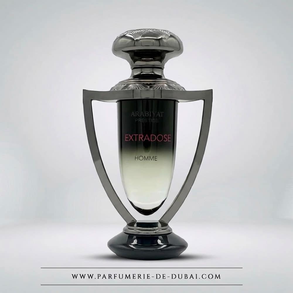Extradose Homme de Arabiyat Prestige es un Fragancia oriental especiada para hombre que encarna el poder adictivo de las especias, la elegancia del cuero ahumado y la sofisticación de la vainilla amaderada. Disponible en agua de perfume en Perfumería de Dubai, Extradose Homme es la fragancia para el hombre atrevido, que celebra la intensidad especiada y la irresistible profundidad del cuero-tonka-ámbar.