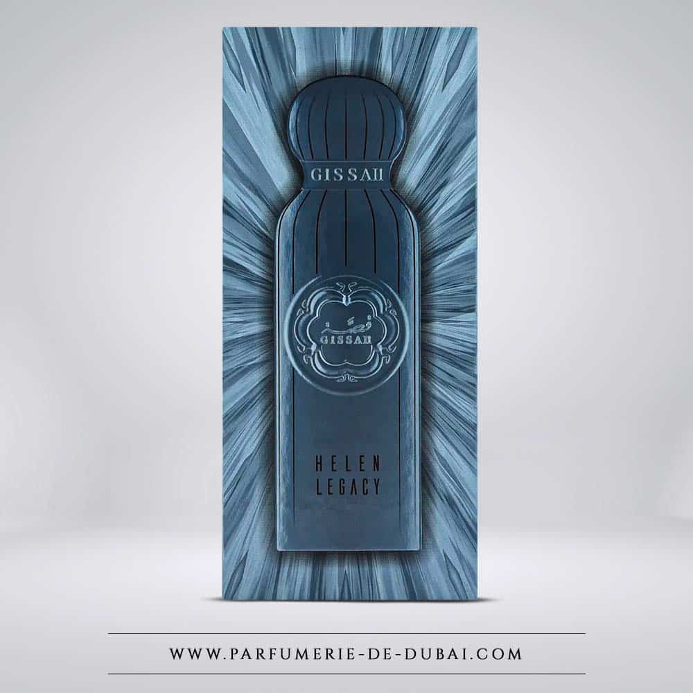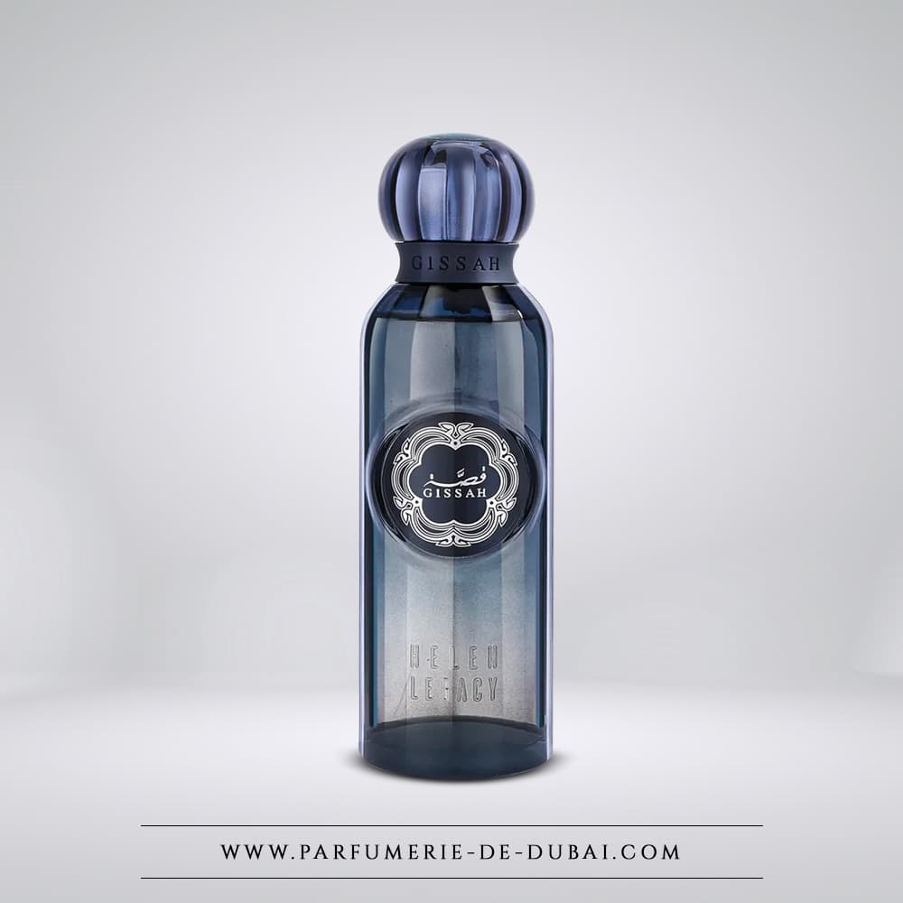 Helen Legacy se presenta en un frasco azul metalizado, elegante y minimalista, fiel a los códigos refinados de la casa Gissah. Una estética sobria, sofisticada y atemporal.