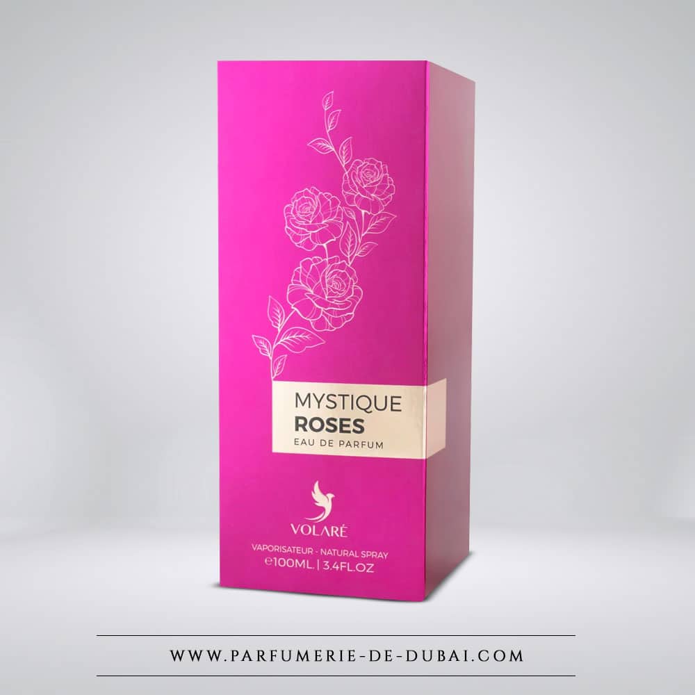 Mystique Roses se presenta en un frasco. rosa fucsia brillante, adornado con una decoración floral dorada que evoca inmediatamente el encanto femenino y la delicadeza de los pétalos de rosa. Las curvas elegantes y redondeadas del frasco ofrecen un agarre agradable, mientras que el tapón dorado con textura aporta un toque de lujo atemporal.