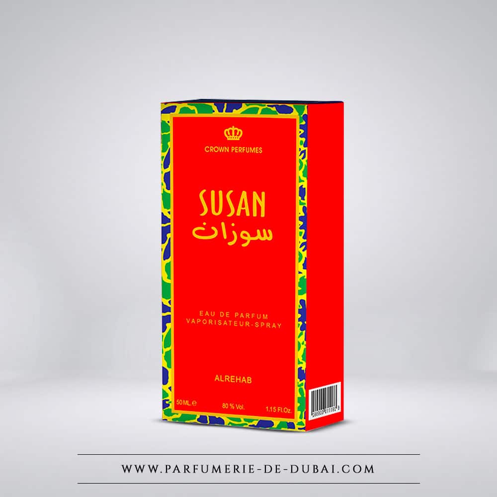 L'eau de parfum Susan d'Al Rehab egy modern, ragyogó és kifinomult keleties illat, amely a virágos frissességet pézsmás érzékiséggel ötvözi.