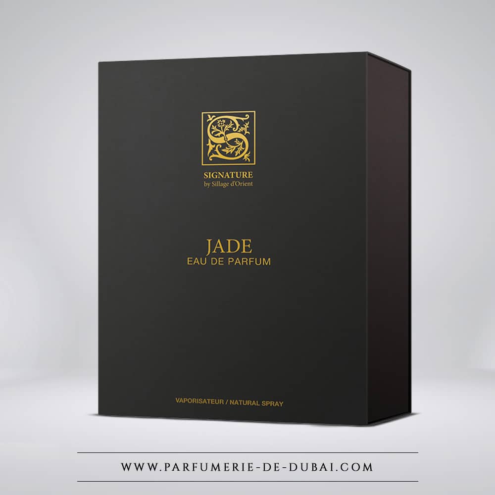 Jade de Signature by Sillage d'Orient yra Hespéridé Gourmand mišrūs kvepalai kuris įkūnija švytinčią eleganciją, Viduržemio jūros regiono gaivą ir apgaubiantį švelnumą. Galima įsigyti parfumuotasis vanduo adresu Dubajaus parfumerija, Nefritas - tai švytinčios sielos aromatas, puoselėjantis brangakmenių spindesį ir nesenstančią kvapų harmoniją.