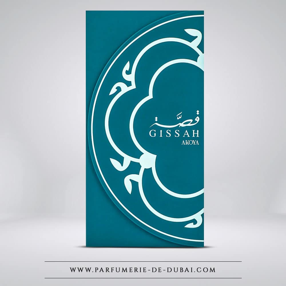 Akoya wordt geleverd in een luxueuze turquoise doos met oosterse motieven, een modern en elegant ontwerp. Een verzamelobject dat perfect het verfijnde DNA van het huis Gissah weerspiegelt.