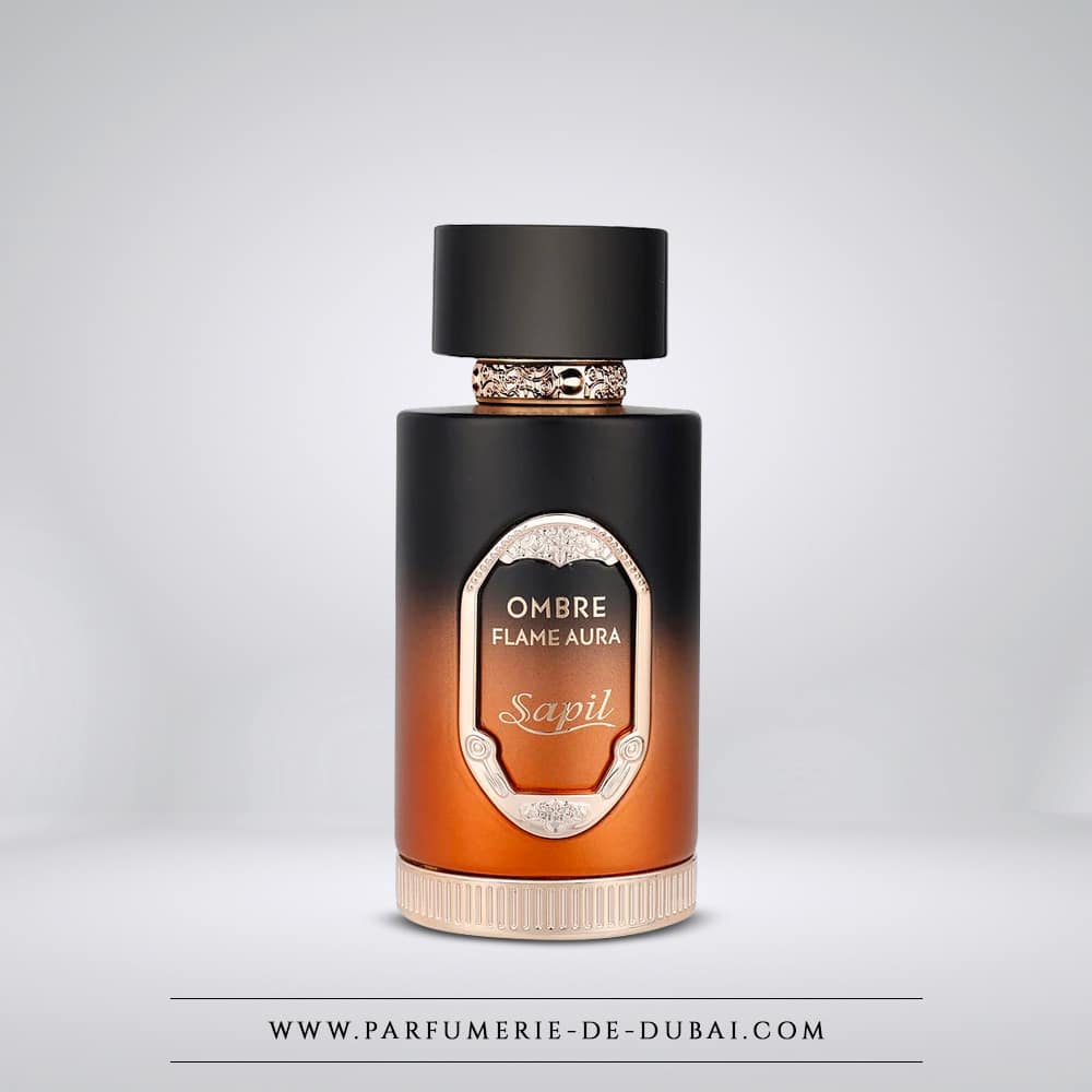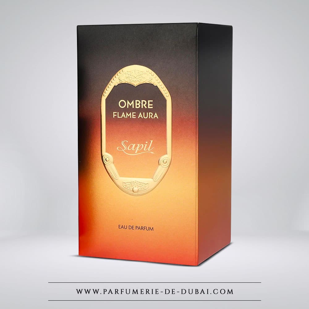 Ombre Flame Aura wordt geleverd in een flesje met een zwart-amberkleurig kleurverloop, dat doet denken aan een beheerste innerlijke vlam. Het elegante ontwerp, verfraaid met gouden details, weerspiegelt perfect de ziel van het parfum: intens, magnetisch en resoluut eigentijds.