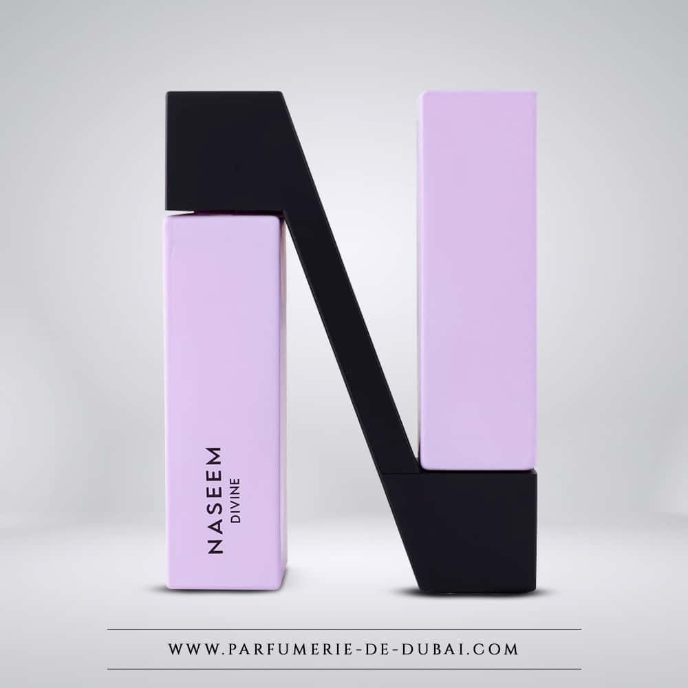 O frasco deste eau de parfum é uma verdadeira obra de arte contemporânea. O seu conceção arquitetónica única tem uma forma retangular alongada em lilás suave e elegante, que é combinado com um elemento preto mate para formar a emblemática letra «N» da Naseem.