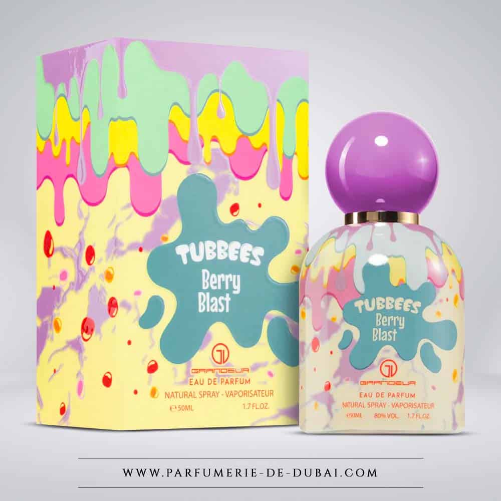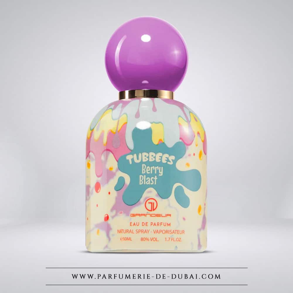 Berry Blast veste-se com um frasco multicolorido estilo splash, com um degradê pastel divertido e uma tampa roxa brilhante. Este design icónico reflete perfeitamente o universo Tubbees: divertido, doce, otimista e totalmente assumido. Uma peça que chama a atenção e que personifica a criatividade da marca.
